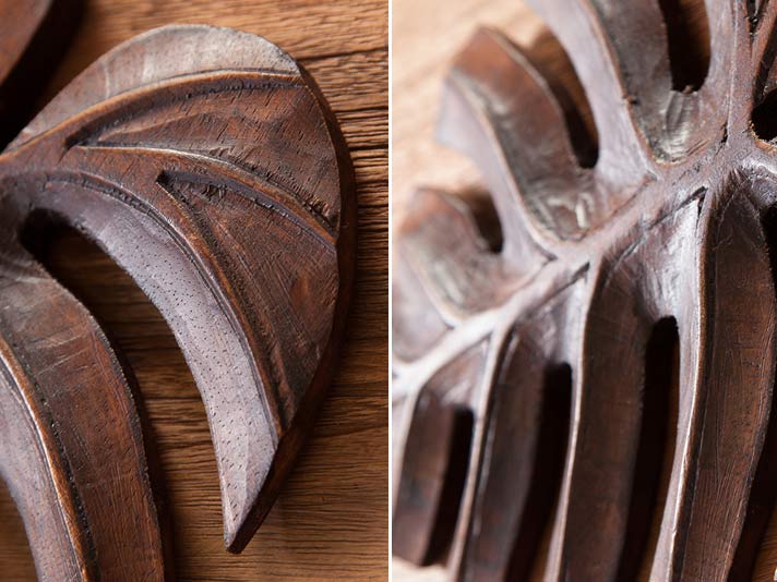 モンステラ【49610】南国の象徴のように愛されるモンステラをモチーフにし、おおらかな葉を広げた姿にしつらえました。 素材に使用したアルベシアは、バリ島山間部に広範囲にわたって生息している木。柔らかく軽い特徴をもっています。