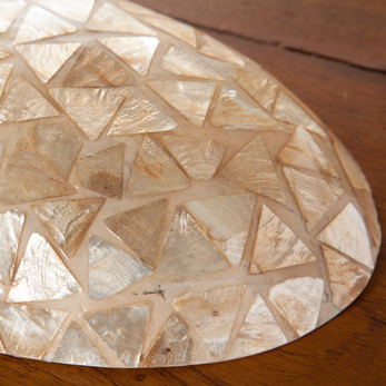 貝殻は1枚ずつ光沢や模様が異なります。深さのあるオーバル型のデザインに敷き詰めるとその豊かな個性が合わさって、ニュアンスのある表情が生まれます。