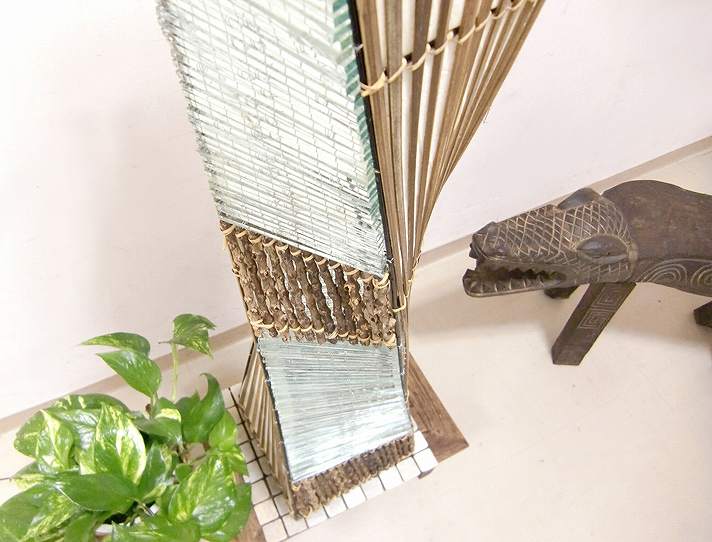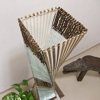 質感の全く違うバンブーとガラスから成る、安定感のある床置きタイプのランプ。