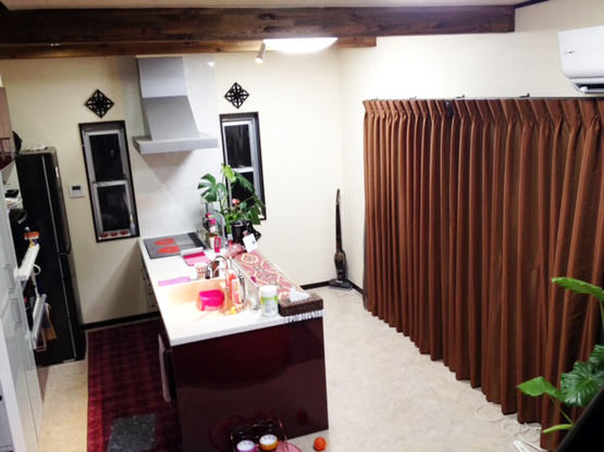 キッチンやカーテンのカラーも統一されていて、こだわりを感じます。 -
